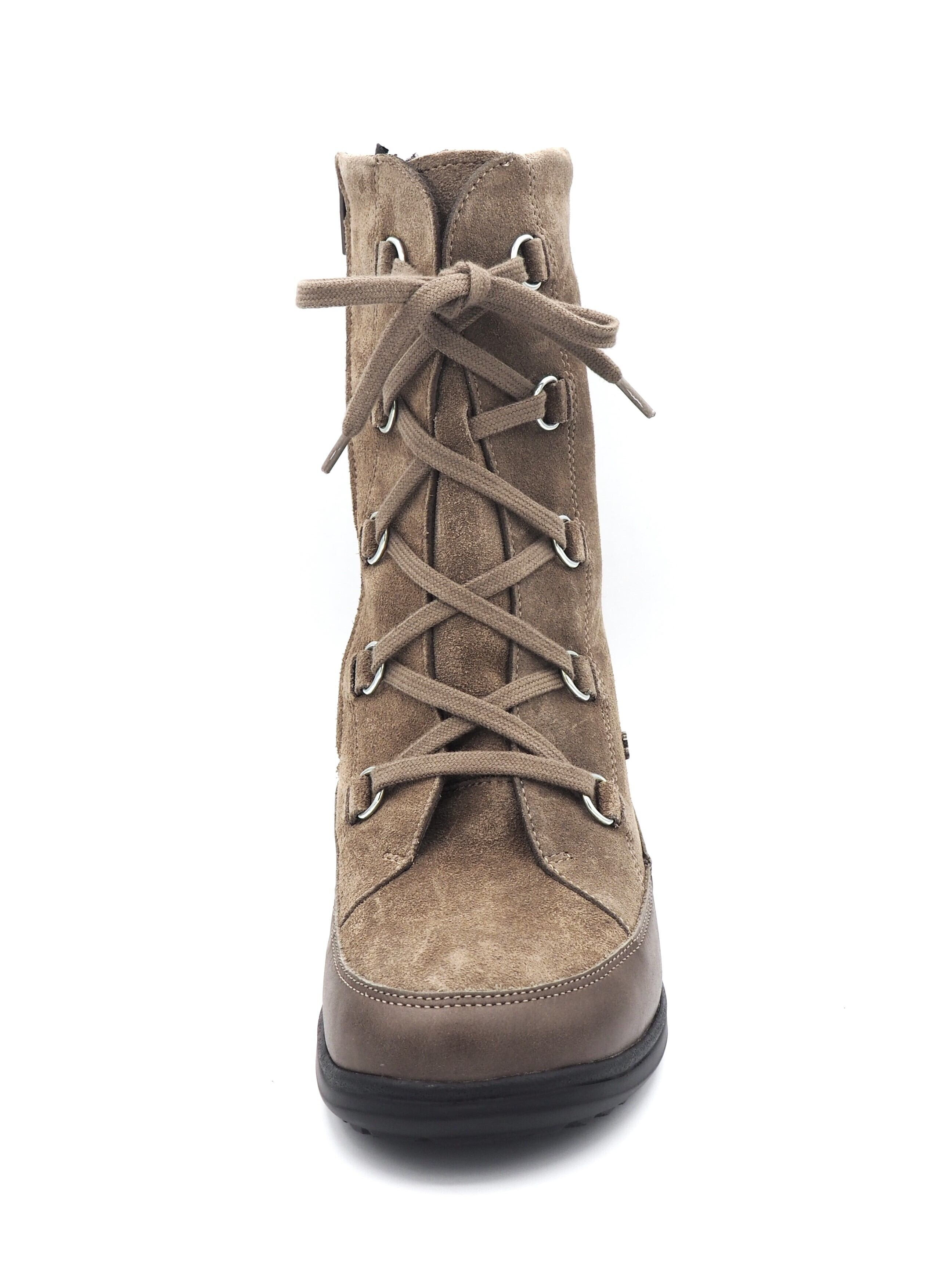 編み上げタイプのハーフ丈ブーツ。